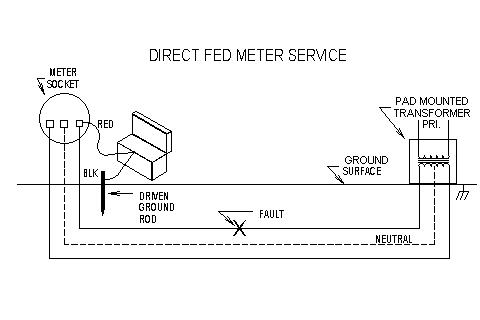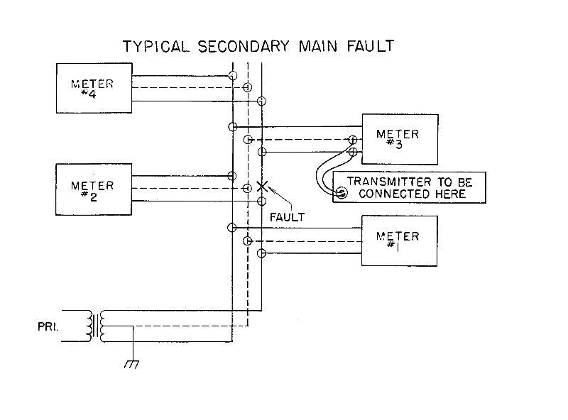 | 2. When a faulted cable is fed from a service mains cable which feeds a group of homes, all of the meters beyond the faulted section must be removed. The meters between the faulted section and the transformer need not be removed. The faulted cable must be identified using some type of loading device that will indicate low voltage. |